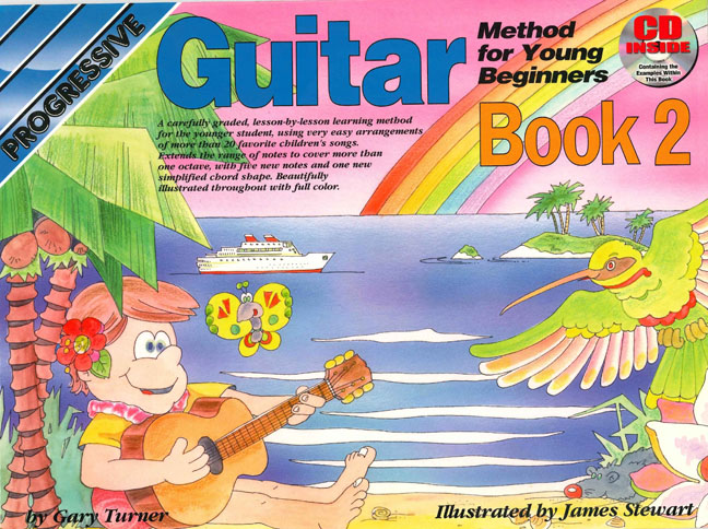 Progressive Guitar Method ForYoungBeginners: Book 2 contains very easy arrangements of over 20 songs and introduces the student to eighth notes, eighth note strum patterns and dotted quarter notes.