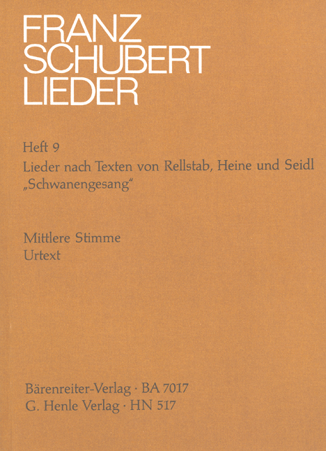 Urtext of the New Schubert Complete Edition in both original key and transposition, edited by Walther Dürr. A coproduction with Bärenreiter-Verlag, Kassel.