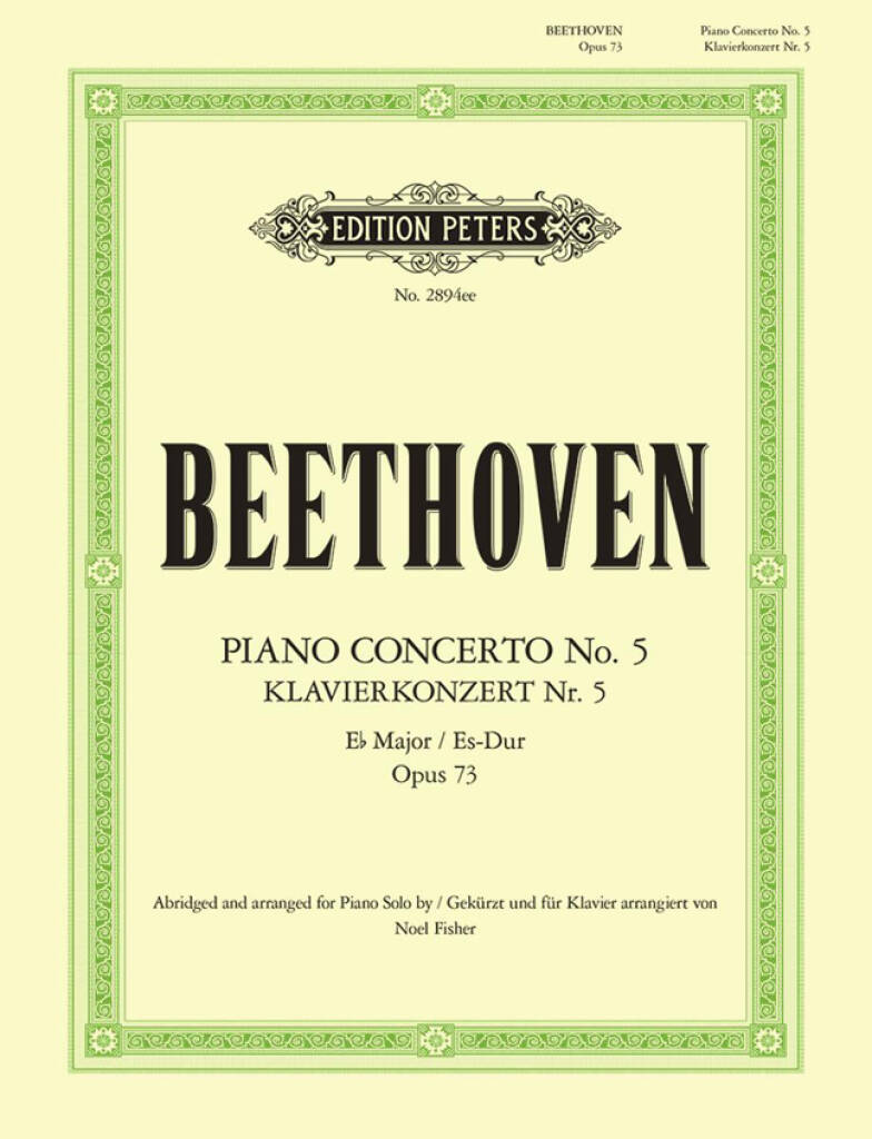 Beethoven’s Concerto for Piano and Orchestra No. 5 in E-flat major Op. 73, commonly known as the ‘Emperor’ Concerto. This arrangement for piano solo has been simplified and abridged by Noel Fisher, to be suitable for intermediate level players. Beethovens Konzert für Klavier und Orchester Nr. 5 in Es-Dur Op. 73, allgemein bekannt als das “Kaiserkonzert”. Bearbeitung für Klavier allein, erleichtert und gekürzt von Noel Fisher vereinfacht und gekürzt, um für Spieler der Mittelstufe geeignet zu sein.