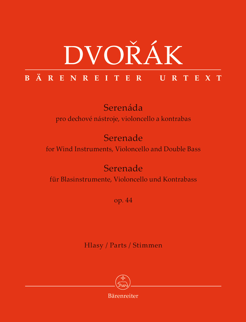 In 1878 Dvorák was in Vienna and was so impressed by a performance of Mozart’s Wind Serenade in B-flat major K. 361 that he wrote his own wind serenade within the space of two weeks after his return. Taking Mozart’s piece as his model, he supplemented the wind band with a bass part for violoncello and double bass. The op. 44 Serenade, which also delighted Johannes Brahms, was issued by Dvorák’s publisher Simrock shortly after its première. Our new Urtext edition draws on this first print while using the autograph to correct a number of mistakes and above all inconsistencies in articulation.