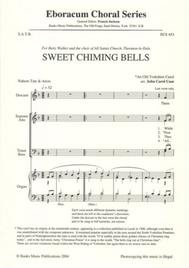 An old Yorkshire carol, arranged by John Carol Case for SATB chorus with Organ accompaniment.