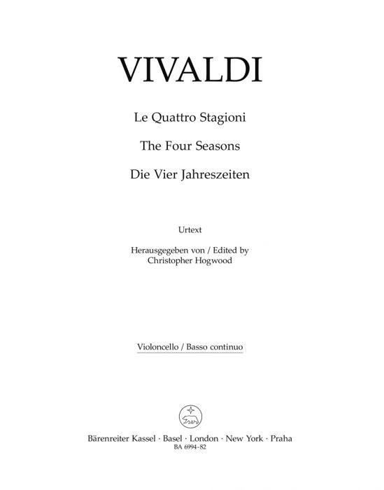 This publication of VivaldiÂ’s masterpiece is a critical performing edition of the Manchester manuscript source, which originates from VivaldiÂ’s circle and represents an alternative (in many cases, moreexplicit) version of these famous concertos than the first printed edition published by Le Cene in Amsterdam in 1725.The Manchester source has until now not been used as the primary basis for a modern performing edition, andoffersnew readings and evidence for players and listeners alike.